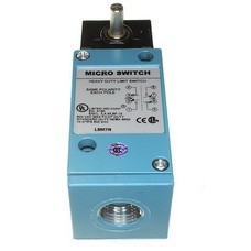 MICRO SWITCH™ heavy-duty limit switches include boss-and-socket head design for secure head-to-body retention, unique all-metal drive train for consistent operating characteristics. Self-lifting pressure plate terminals save wiring time, easily identified grounding terminal (inside) for compliance with OSHA and other regulatory agency standards. One piece flat gasket does not contact terminal pins to reduce chances of fluid migration. Front mounting and interchangeability of single- and double-pole switches, plug-in and non plug-in with one another and with other switch brands. Twin shaft seals for an extra measure of protection, inner O-ring seal, outer Buna-N seal (all FC available,) FC shaft and diaphragm seals on side rotary switches. Rugged corrosion-resistant zinc head and body are phosphate treated and epoxy finished. Exclusive teller tab assures proper torque (when it cannot be moved the lever is tight enough to prevent slippage). Domestic and international conduit taps available.