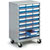 4 casters, 2 with brakes. Load capacity of cabinet with casters is 330lbs.